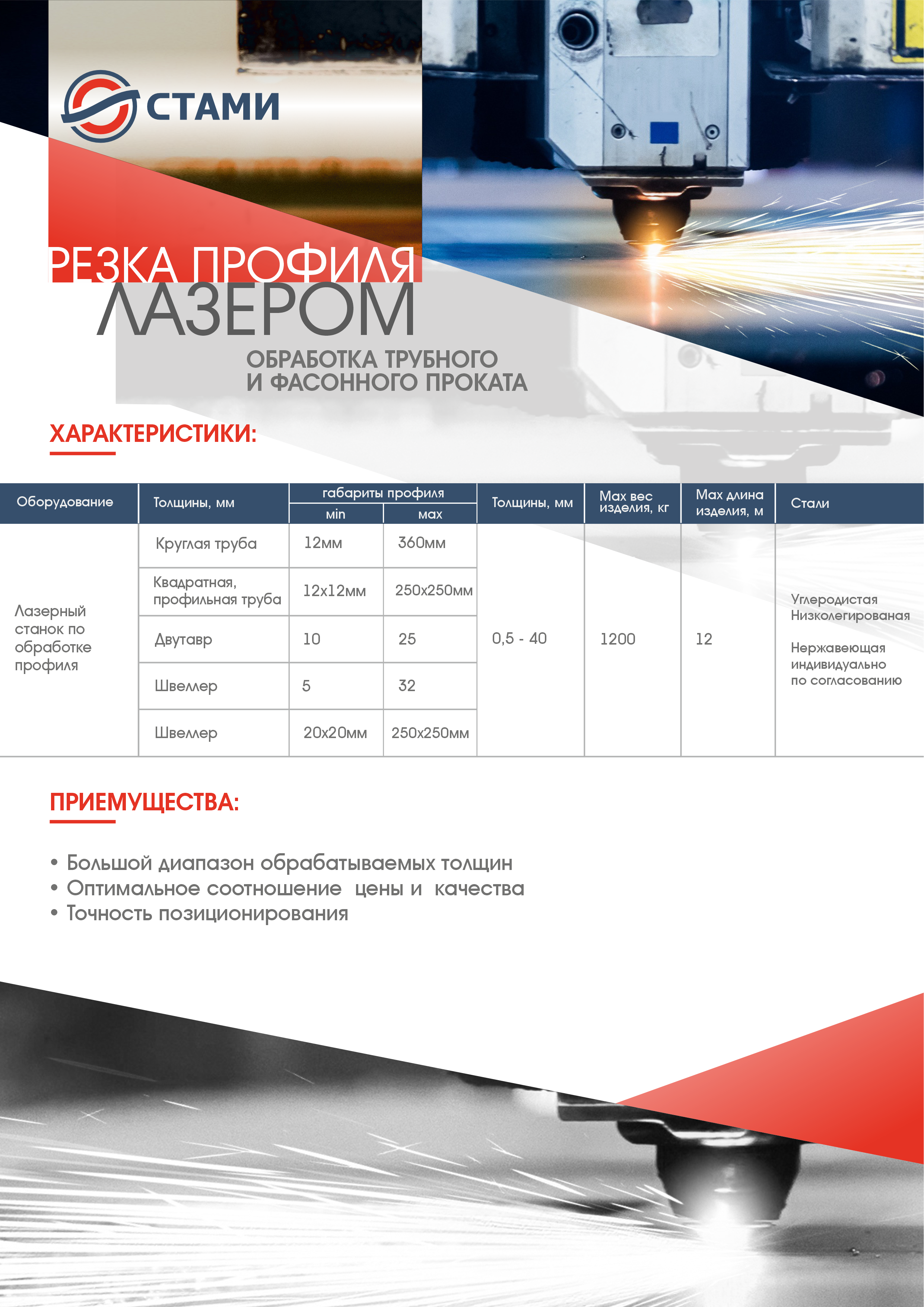 ООО «Сервисный металлоцентр «Стами» производит равнополочный (по ГОСТ 19771-93) и неравнополочный (по ГОСТ 19772-93) гнутый уголок (металлический профиль с Г-образной формой поперечного сечения) из стального штрипса на автоматической линии холодной прокатки способом холодного профилирования толщиной от 2 до 6 мм шириной полки от 25 мм до 160мм и длиной до 12 метров. Гнутый уголок изготавливается из углеродистой стали обыкновенного качества (ст3пс, ст3сп), низколегированной стали марки 09Г2С.